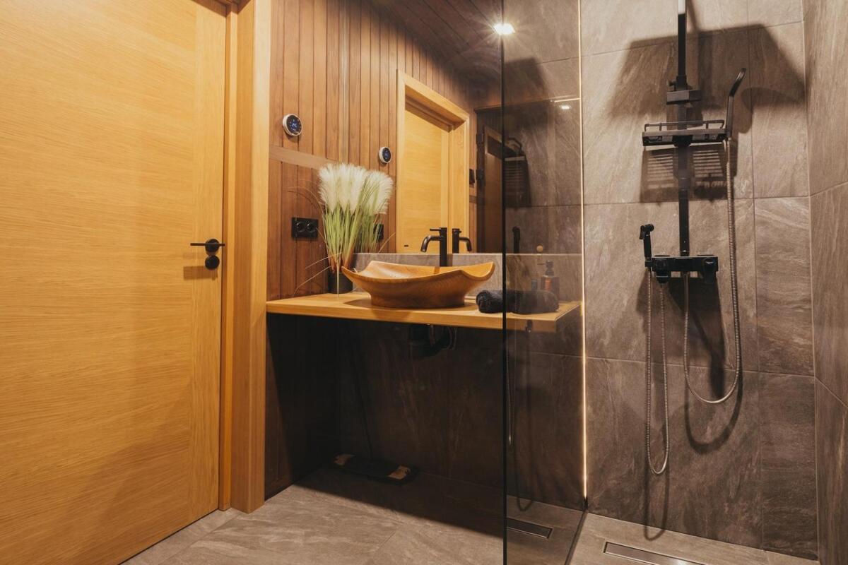 One-Bedroom House. The sauna is the standout feature of this holiday home. Boasting a private entrance, this air-conditioned holiday home comes with 1 living room, 1 separate bedroom and 1 bathroom with a walk-in shower and a hairdryer. Guests will find a stovetop, a refrigerator, kitchenware and an electric kettle in the well-fitted kitchen. The holiday home also includes a barbecue. Featuring a terrace with garden views, this holiday home also features soundproof walls and a flat-screen TV. The unit has 1 bed.
