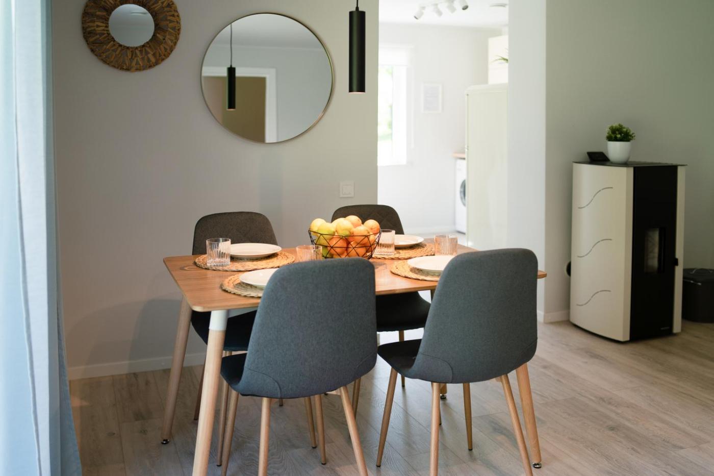 The holiday home is located on the ground floor and has 1 bedroom, a flat-screen TV and a fully equipped kitchen that provides guests with a dishwasher, an oven, a washing machine, a toaster and a fridge. Towels and bed linen are offered in the holiday home. The property has an outdoor dining area.