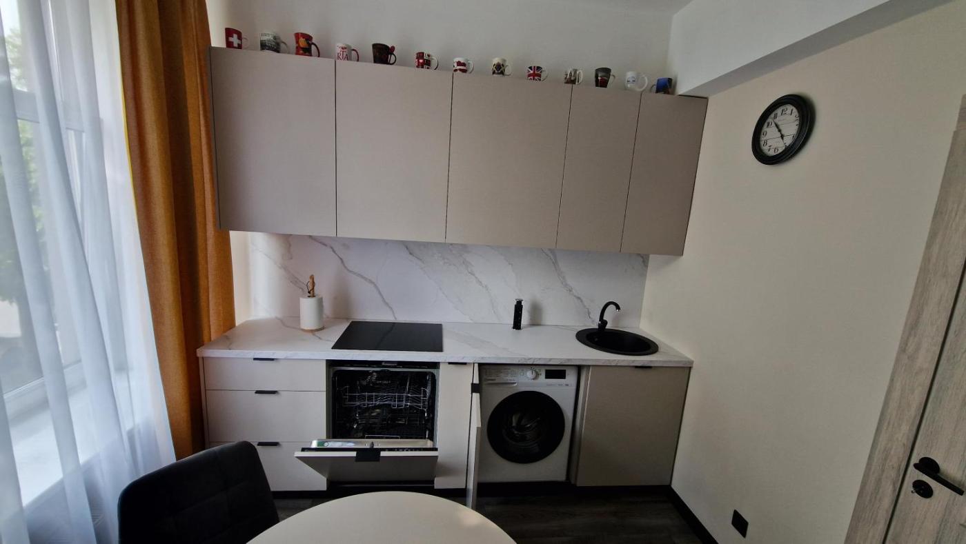 One-Bedroom Apartment. The well-equipped kitchen features a stovetop, a refrigerator, a dishwasher and kitchenware. The apartment offers a washing machine, a dining area, a wardrobe, a flat-screen TV with cable channels, as well as a quiet street view. The unit offers 1 bed.