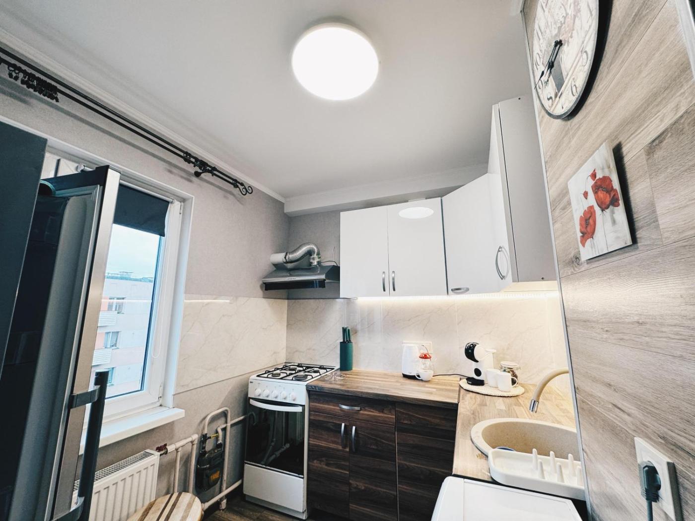 One-Bedroom Apartment. Guests can make meals in the kitchen that is equipped with a stovetop, a refrigerator, kitchenware and a tea and coffee maker. Featuring a balcony with city views, this apartment also provides a washing machine and a flat-screen TV with cable channels. The unit offers 2 beds.