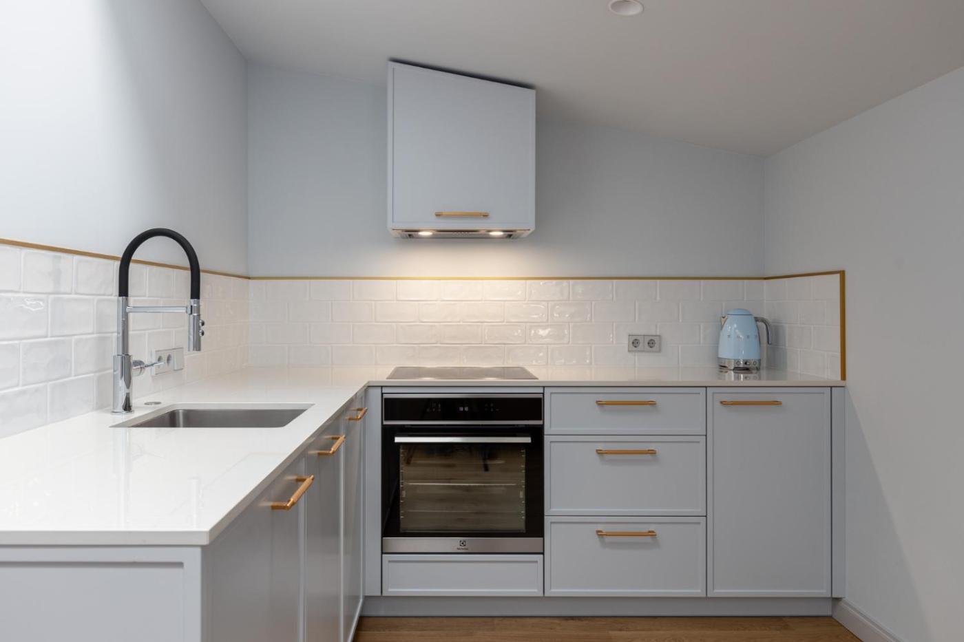 One-Bedroom Apartment. This apartment consists of 1 living room, 1 separate bedroom and 1 bathroom with a walk-in shower and free toiletries. The fully equipped kitchen features a stovetop, a refrigerator, a dishwasher and kitchenware. The air-conditioned apartment provides a flat-screen TV with streaming services, a washing machine, soundproof walls, a tea and coffee maker as well as city views. The unit offers 2 beds. ;