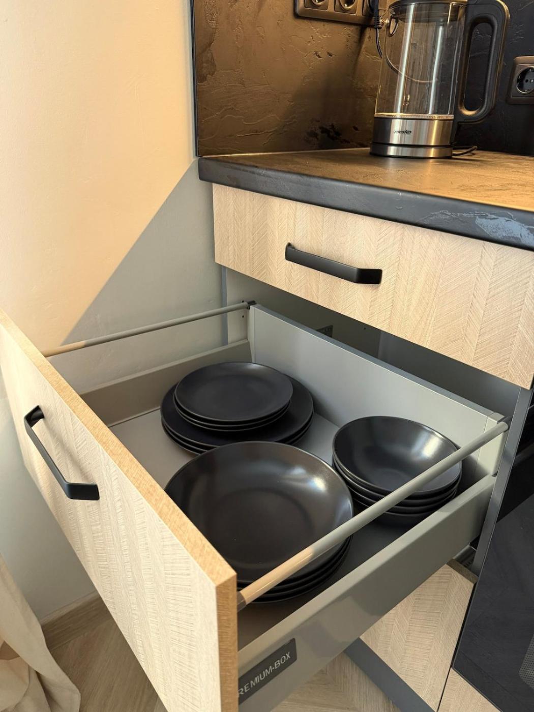 One-Bedroom Apartment. This apartment consists of a kitchen, a seating area, 1 separate bedroom and 1 bathroom with a bath and a shower. In the well-equipped kitchen, guests will find a stovetop, a refrigerator, kitchenware and an oven. The apartment provides a washing machine, soundproof walls, a tea and coffee maker, a TV, as well as ancourtyard view. The unit offers 1 bed.