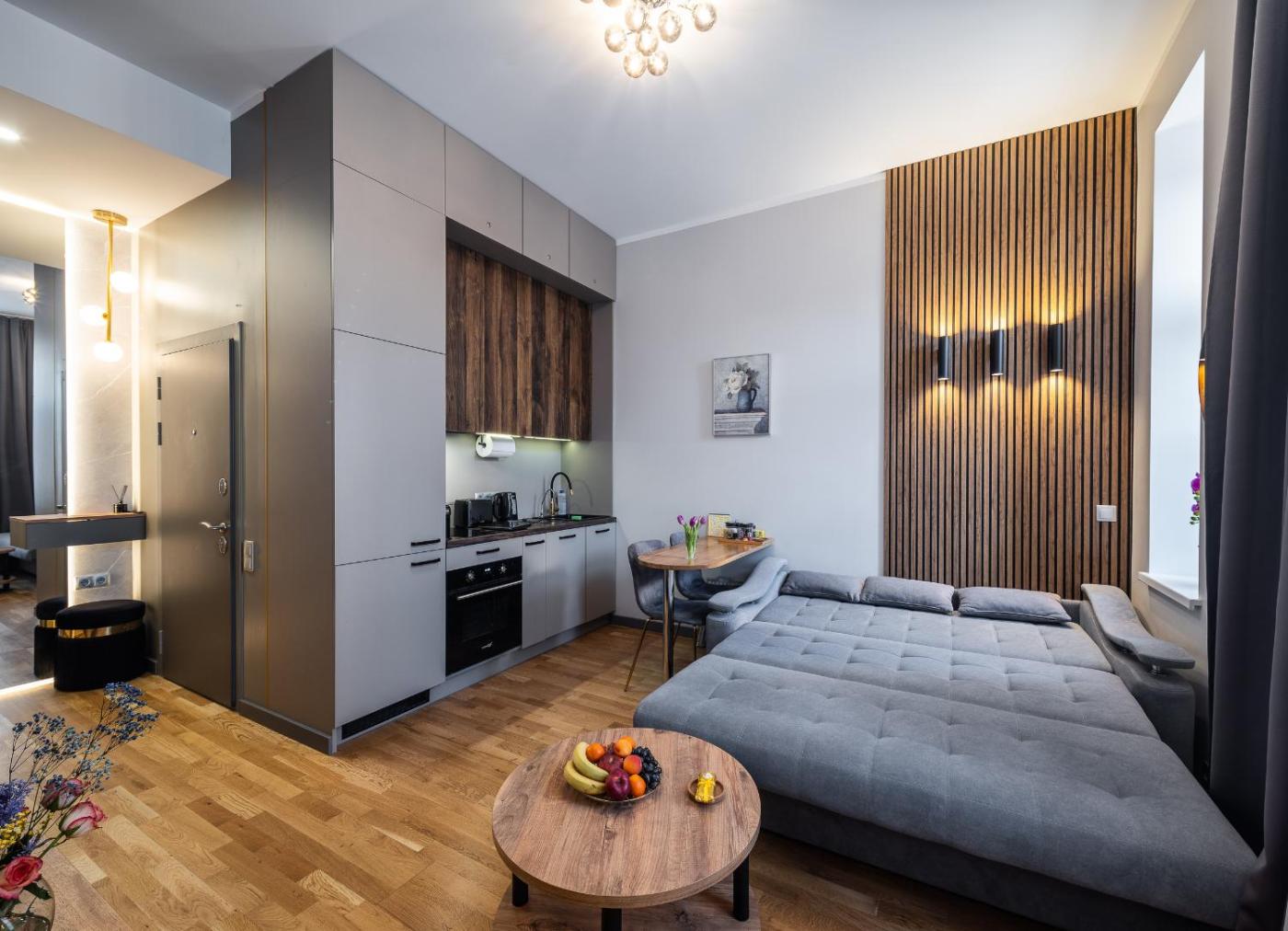 One-Bedroom Apartment. Boasting a private entrance, this apartment comes with 1 living room, 1 separate bedroom and 1 bathroom with a walk-in shower and a hairdryer. In the fully equipped kitchen, guests will find a stovetop, a refrigerator, a dishwasher and kitchenware. The apartment features a washing machine, soundproof walls, a tea and coffee maker, a flat-screen TV with streaming services, as well as city views. The unit has 2 beds.