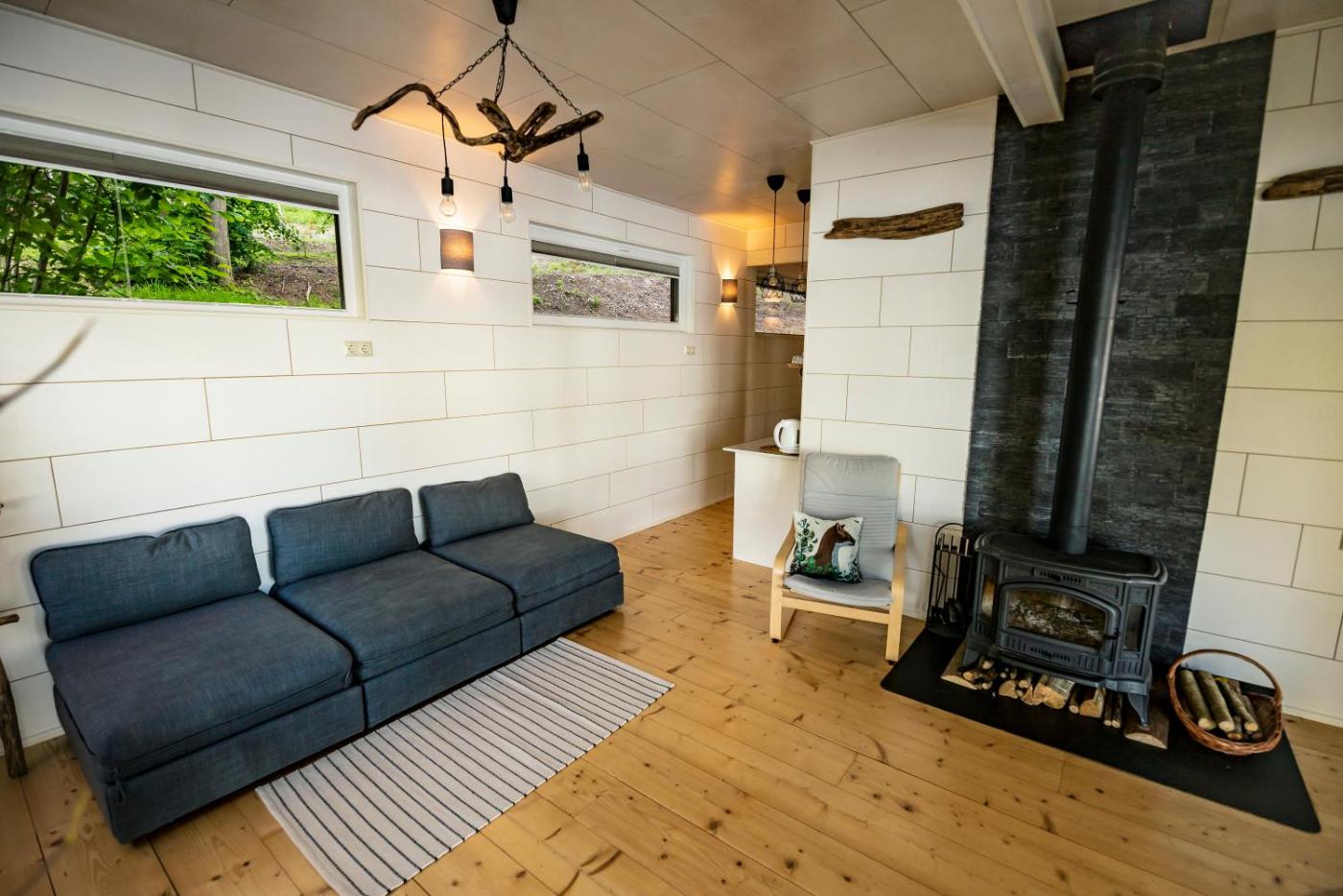 One-Bedroom House. This holiday homes standout features are the hot tub and fireplace. Featuring a private entrance, this air-conditioned holiday home consists of 1 bedroom and 1 bathroom with a shower. Guests will find a stovetop, a refrigerator, kitchenware and an electric kettle in the well-equipped kitchenette. The holiday home also offers a barbecue. The holiday home provides a seating area, parquet floors, as well as a terrace and a patio. The unit offers 4 beds. ;