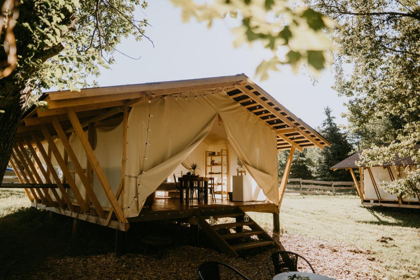Tent. The fireplace is a top feature of this tent. Featuring a tea and coffee maker, a dining area and a wardrobe, this tent includes a shared bathroom. The tent is furnished with a desk and a seating area and features a washing machine, a private entrance and lake views. The unit has 3 beds. ;